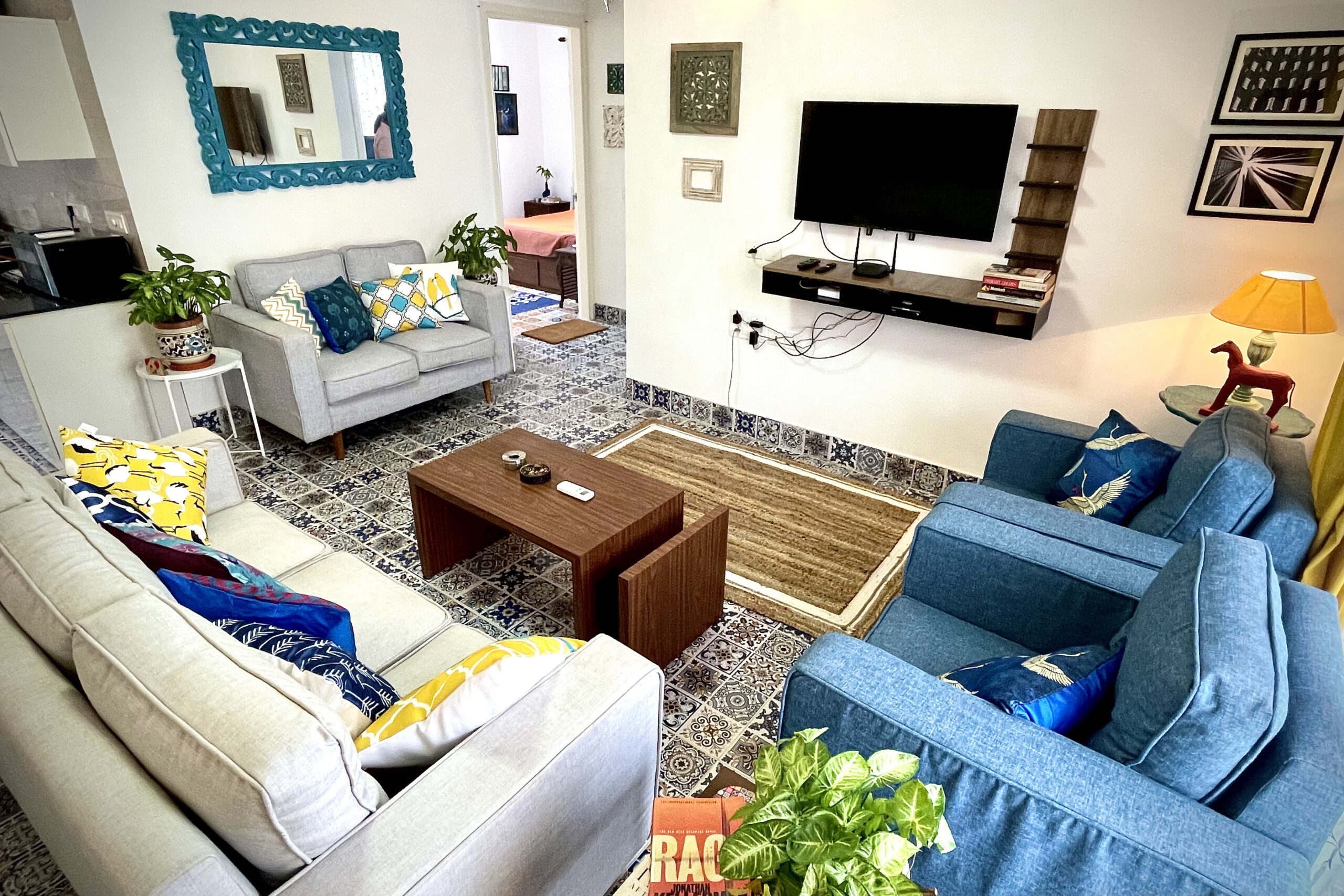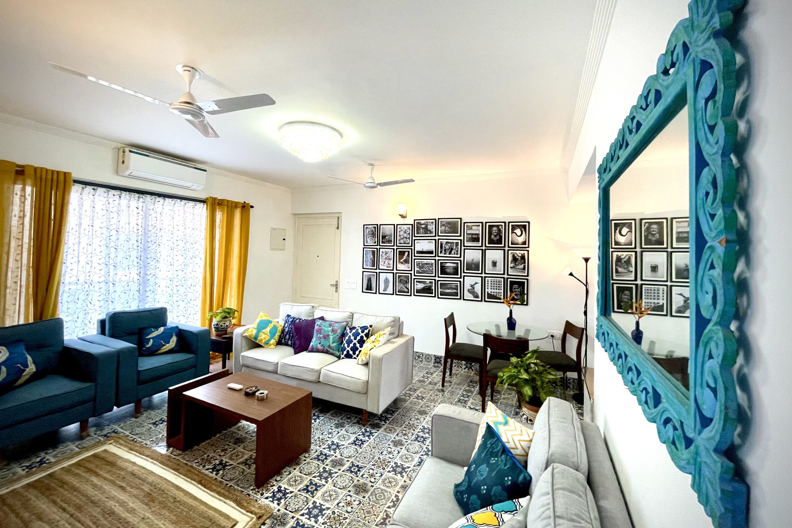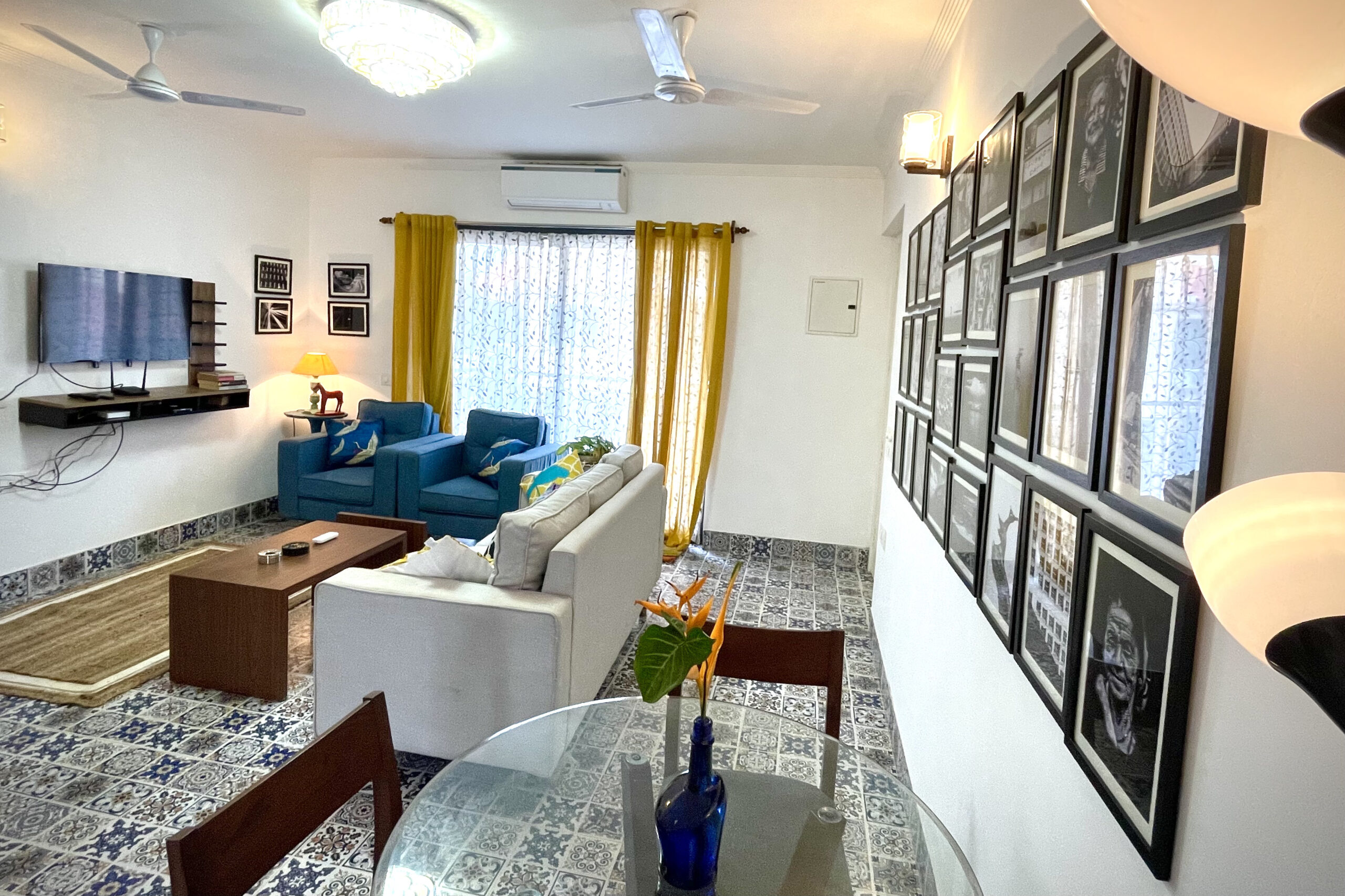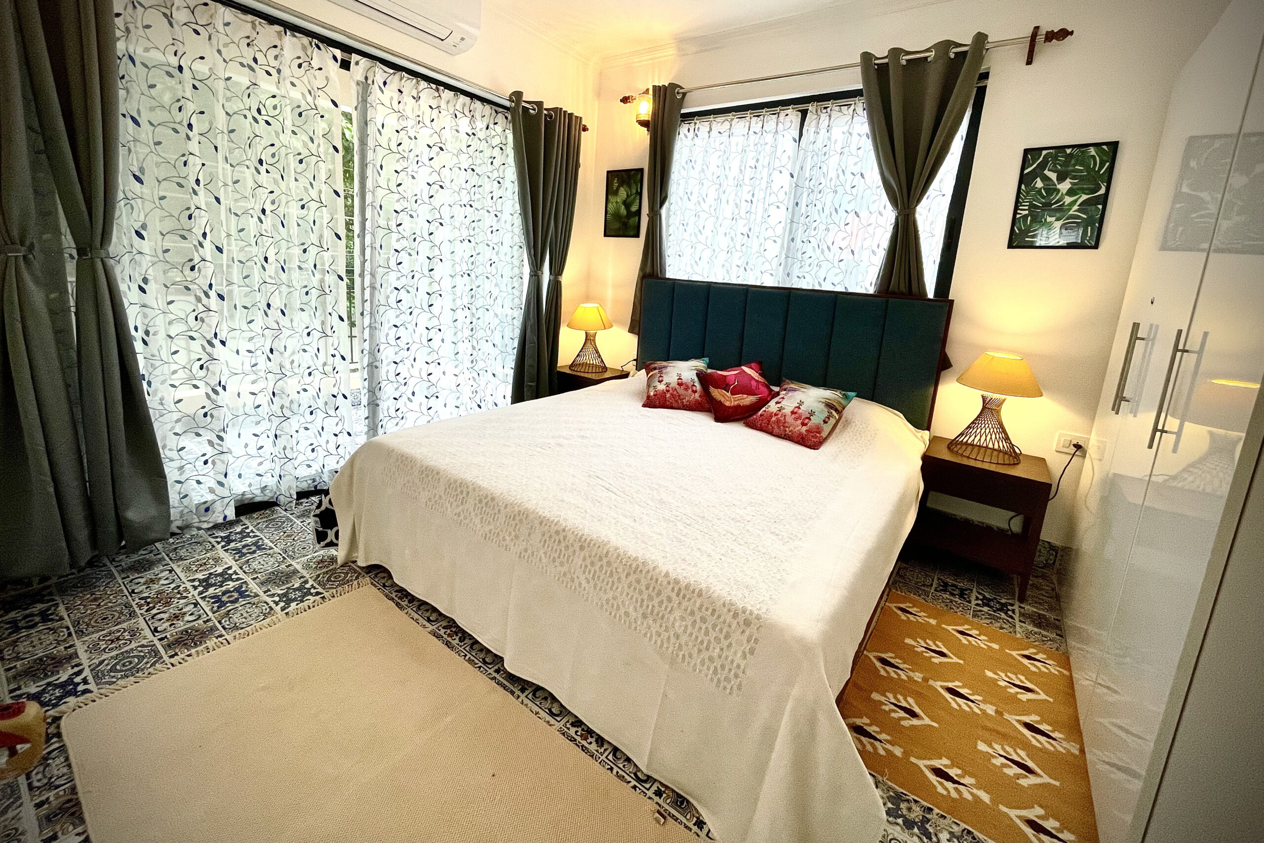 It is a cozy and comfortable abode, yet spacious and luxurious 2BHK apartment in the heart of Siolim, max 15 mins drive to famous beaches of Vagator, Anjuna and Morjim. A fully loaded chic and eclectic house, it has all the amenities to make your stay comfortable and hassle free, high speed internet, fully functional kitchen, access to huge pool and gym, exactly what a ‘Susegad’ Stay looks like!